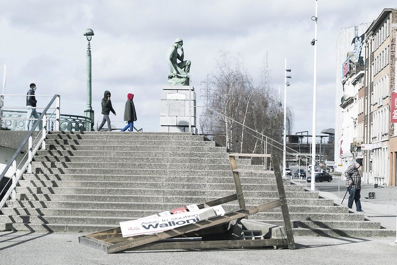 Charleroi è un posto talmente ostile che sembra la parodia della città malfamata, sembra Gotham City. Non c’è nessuno in giro, solo pochi soggetti malandati, o pessimi; in genere uomini. Le piazze sono sventrate, come a L’Aquila. I negozi vuoti. I palazzi inagibili e grigi. Questo viale tra la stazione e il fiume è l’unico in cui mi sia sentita di tirare fuori la macchina fotografica.